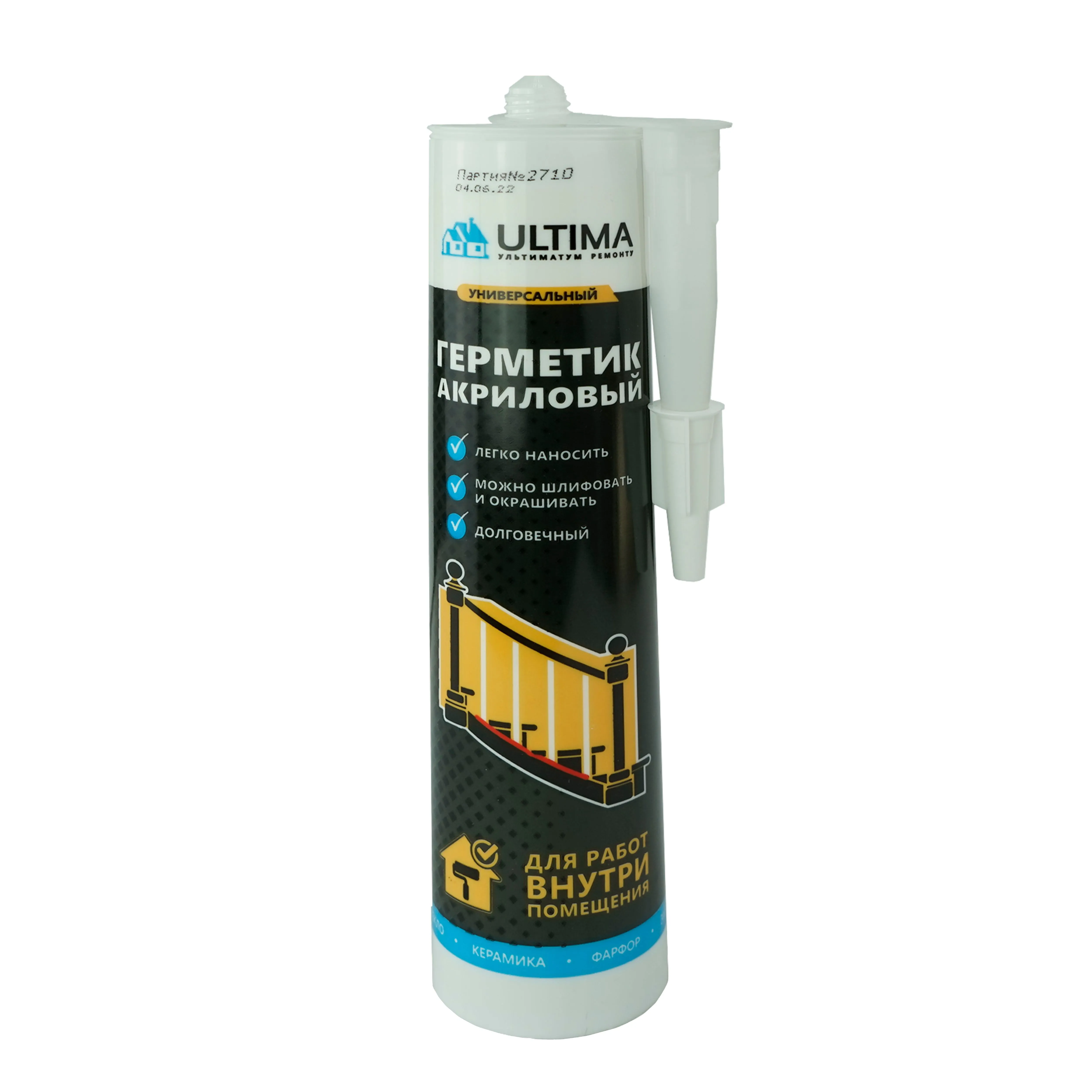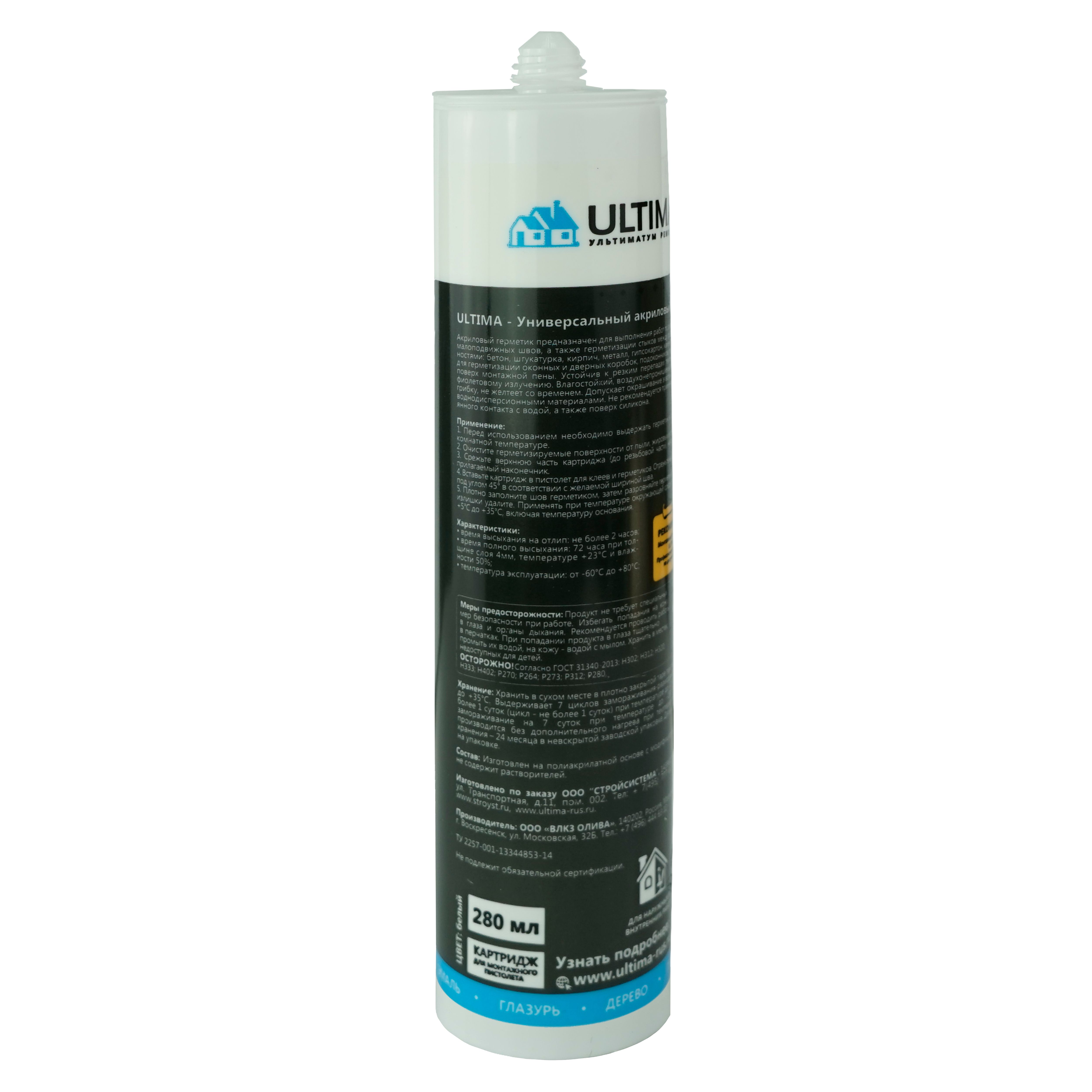 Универсальный акриловый герметик на водной основе для заполнения трещин и малоподвижных швов.