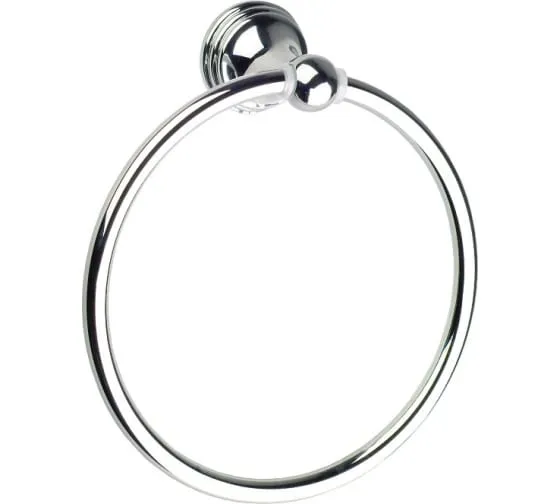 Хромированный держатель для полотенец в форме кольца впишется в любой интерьер и дополнит дизайн ванной комнаты.