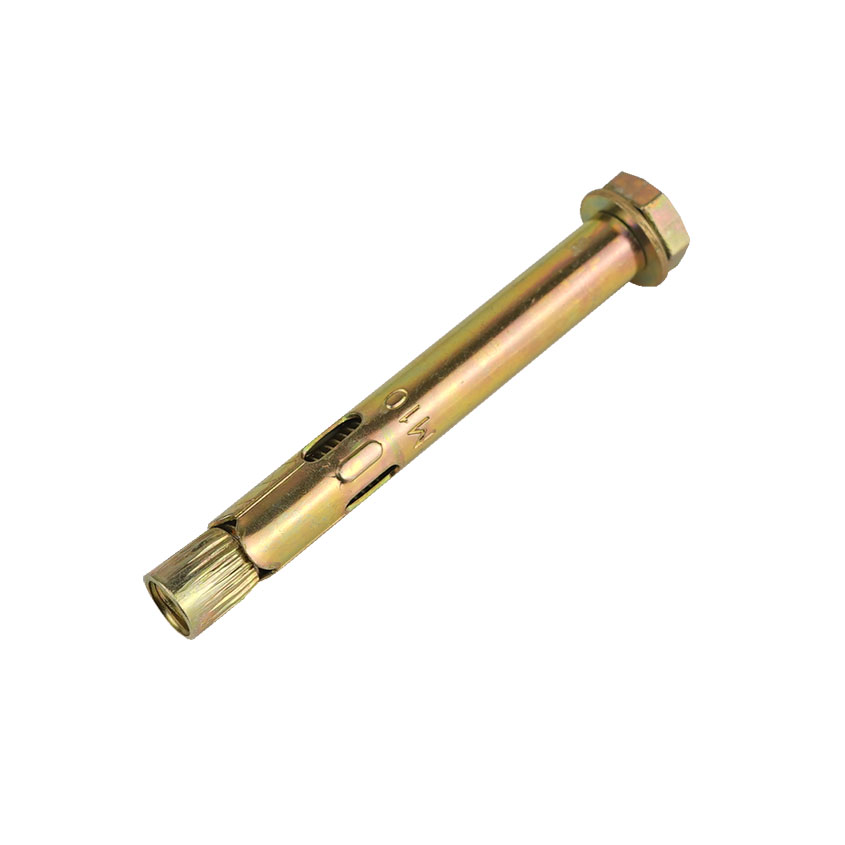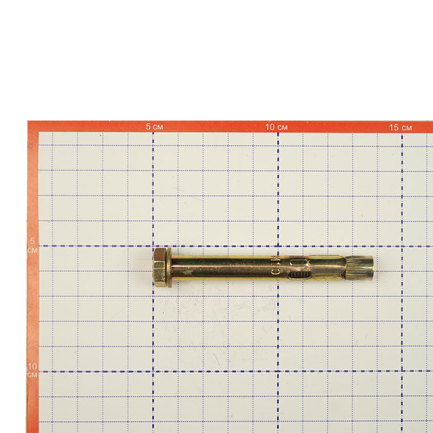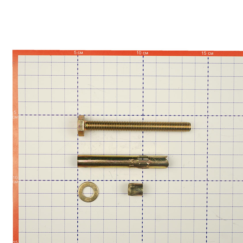 Анкерный болт изготовлен из углеродистой стали холодного формования. Состоит из резьбовой шпильки с конусообразным нижним концом, распорной втулки с продольными боковыми прорезями и гайки, при помощи которой такой болт фиксируется в посадочном отверстии.