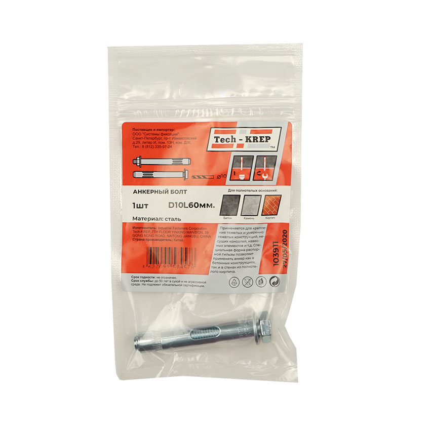 Анкерный болт HBM 10х60мм цена - купить в Барнауле, Бийске. Размеры, характеристики, фото в интернет-магазине.