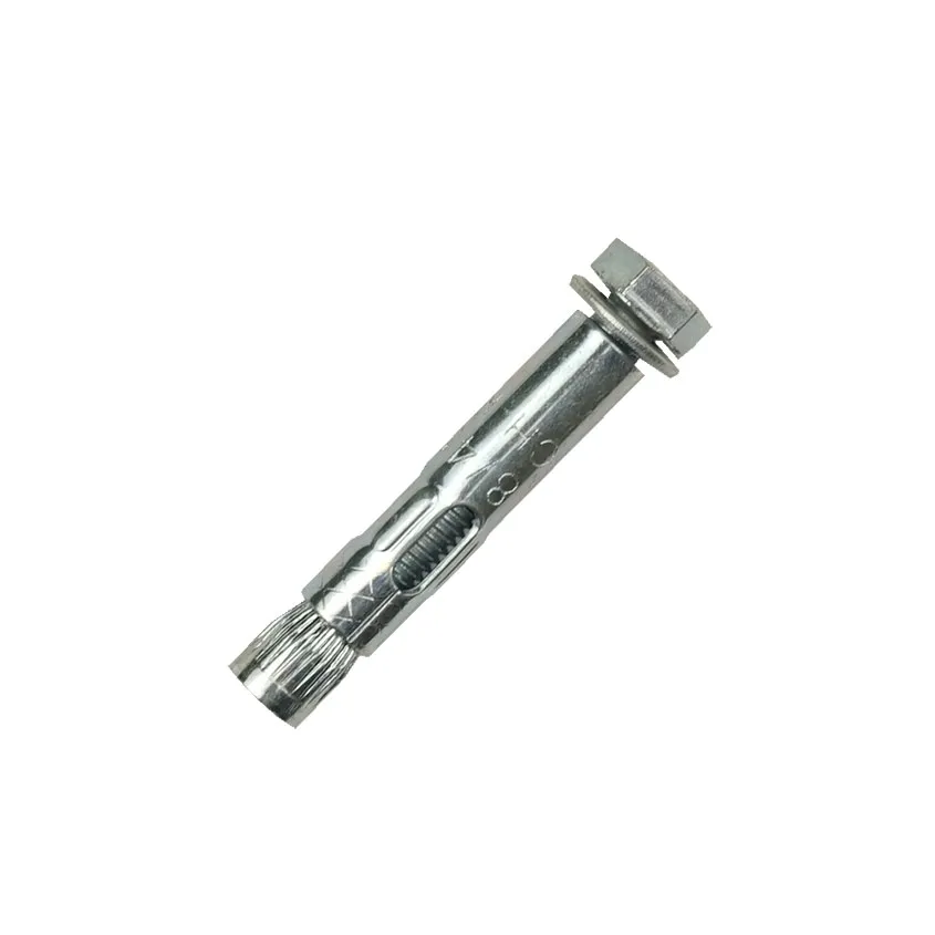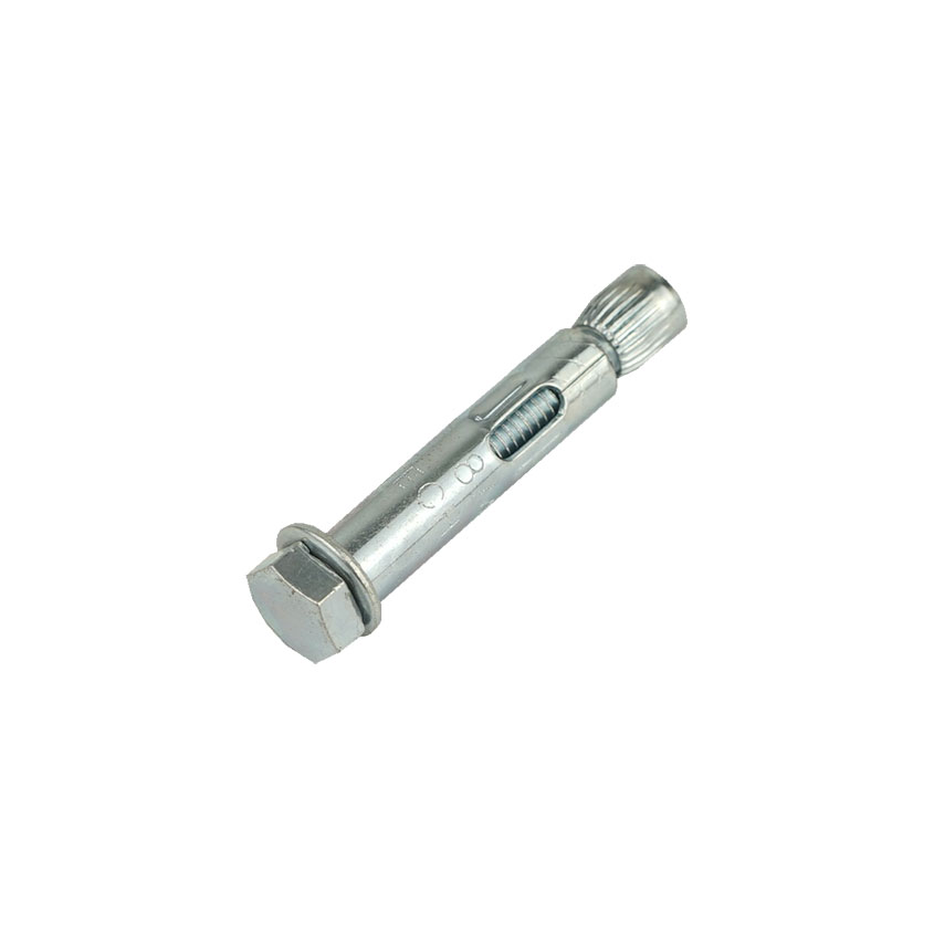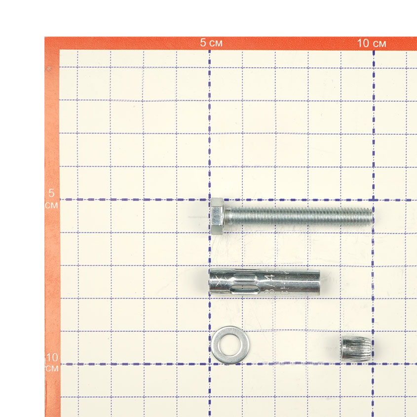 Анкерный болт изготовлен из углеродистой стали холодного формования. Состоит из резьбовой шпильки с конусообразным нижним концом, распорной втулки с продольными боковыми прорезями и гайки, при помощи которой такой болт фиксируется в посадочном отверстии.