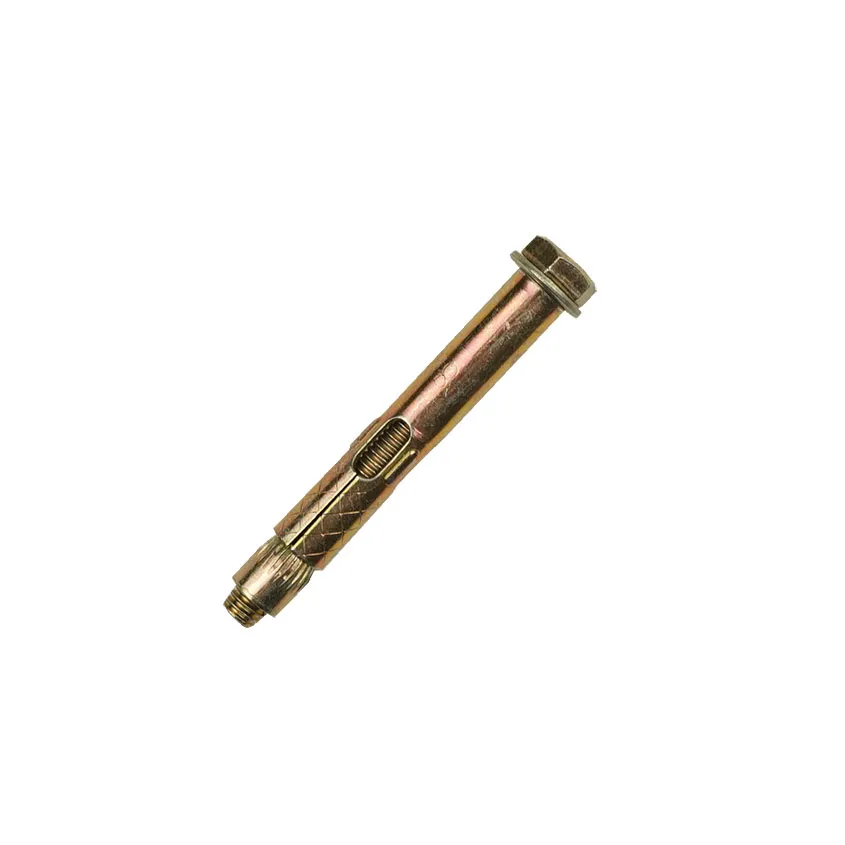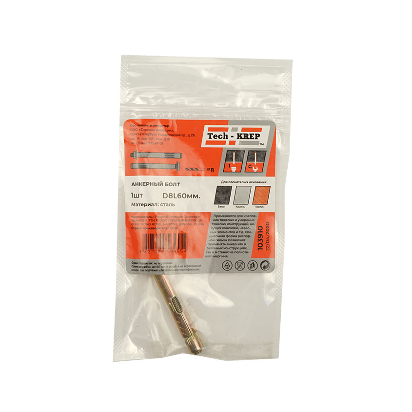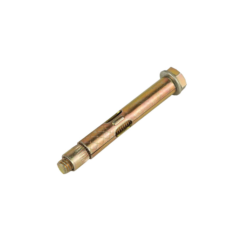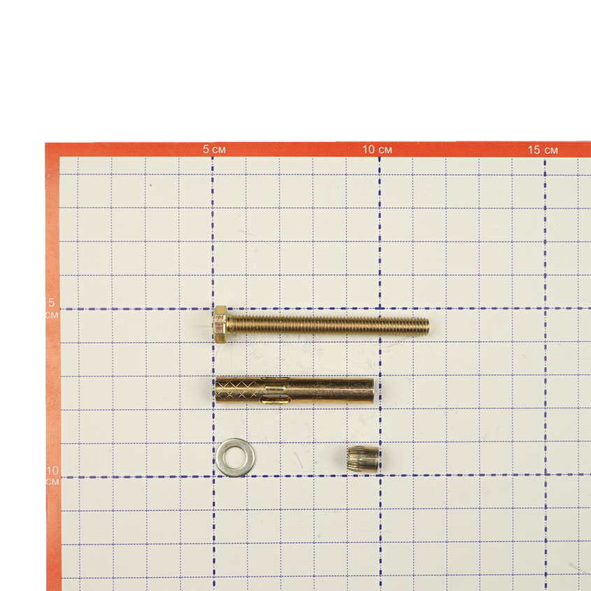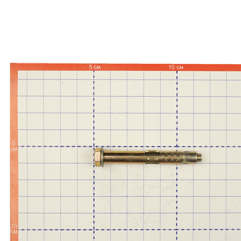 Анкерный болт изготовлен из углеродистой стали холодного формования. Состоит из резьбовой шпильки с конусообразным нижним концом, распорной втулки с продольными боковыми прорезями и гайки, при помощи которой такой болт фиксируется в посадочном отверстии.