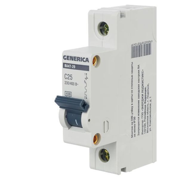 Автоматический выключатель ВА 47-29 (Generica) 1P 25А, тип С (MVA21-1-025-C-G) цена - купить в Барнауле, Бийске. Размеры, характеристики, фото в интернет-магазине.