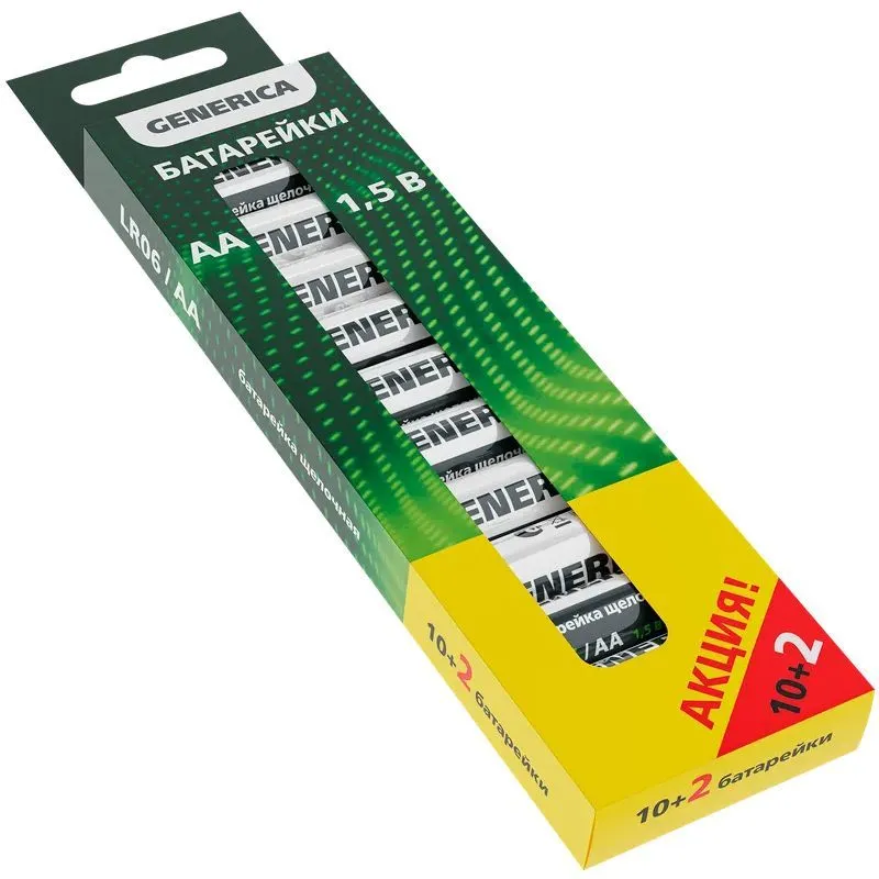 Элемент питания (Generica) LR06/АА батарейка пальчиковая, 12шт цена - купить в Барнауле, Бийске. Размеры, характеристики, фото в интернет-магазине.