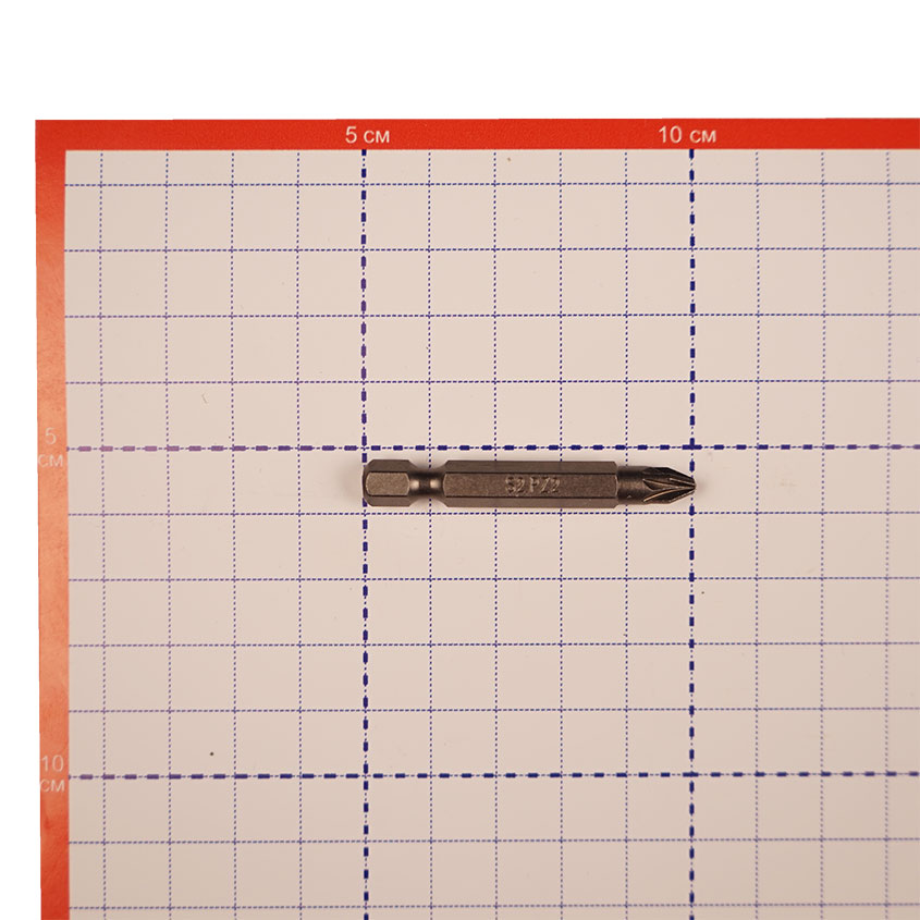 Маркировка биты — PZ2. Буквы PZ означают, что она используется под особый вид крестообразного шлица типа Pozidriv. Цифра обозначает диаметр наружной резьбы крепежного элемента, для которого предназначено жало.