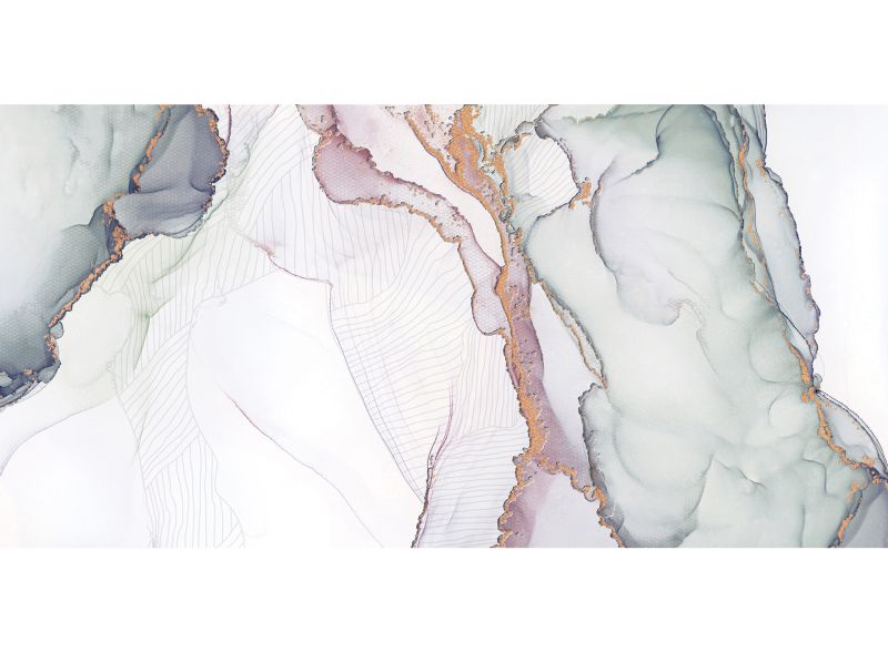 Коллекция Блисс задумана по принципам биофильного дизайна: она создает связь человека с природой внутри жилой среды. Акварельные узоры на белоснежном фоне похожи на ритм ряби на воде, а в разработке дизайна мы вдохновлялись цветовыми переходами красок в эпоксидной смоле. В последние годы тренд на эпоксидную смолу только набирает обороты: от украшений до декора мебели. В коллекции Блисс использованы карвинговые чернила, которые позволяют создать микрорельеф: текстура выглядит естественно и выразительно, при этом меньше пачкается и проста в уходе.
