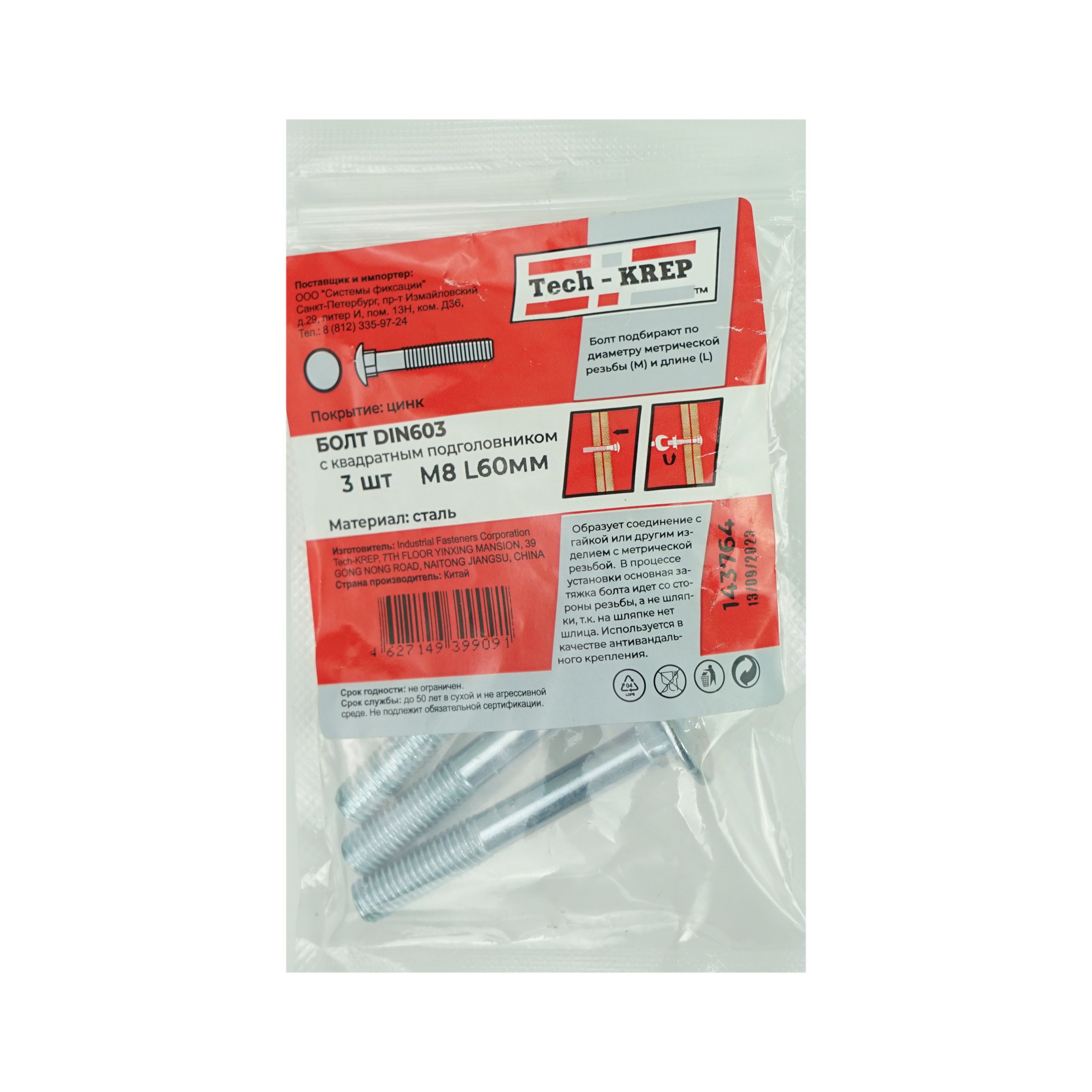 За счет подголовника, утопленного в квадратном посадочном месте, болт мебельный не прокручивается в отверстии при затягивании. Широкая низкопрофильная шляпка хорошо прижимает скрепляемые детали, не продавливая поверхность в месте крепления.