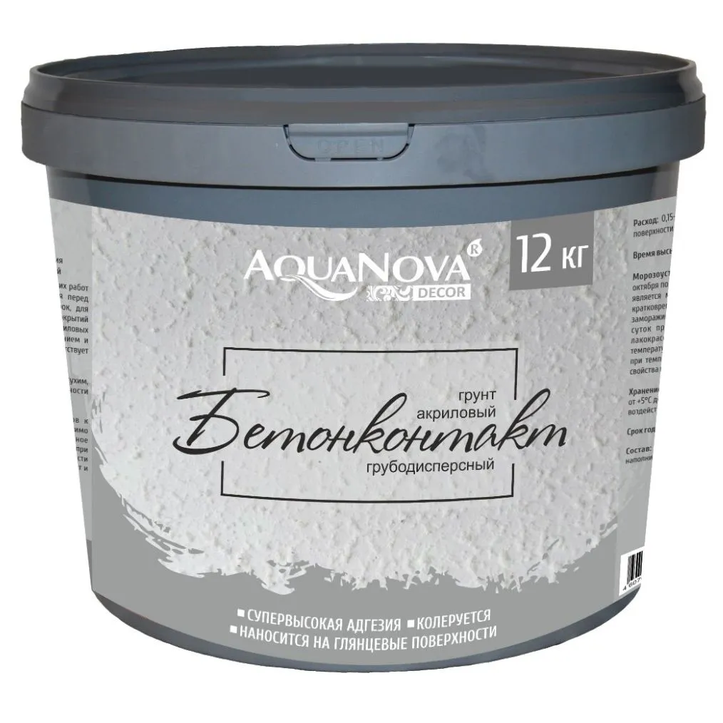 Грунт предназначен для создания адгезионного, шероховатого слоя перед нанесением декоративных и обычных штукатурок, а также для обработки покрытий из плитки перед укладкой на них новой керамической плитки, для грунтования различных алкидных и масляных покрытий под дальнейшую окраску водно-дисперсионными материалами.Увеличивает сцепление между основой и последующими отделочными слоями. Препятствует сползанию толстослойных покрытий.
