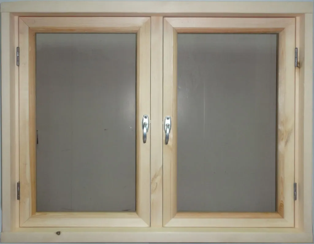 Окно деревянное двухстворчатое изготовлено из массива дерева, как правило, из массива хвойных пород, преимущественно сосны. Это экологически чистые окна, которые не выделяют вредные вещества. К тому же они естественно дышат даже в закрытом состоянии и не создают духоты, закупорки.