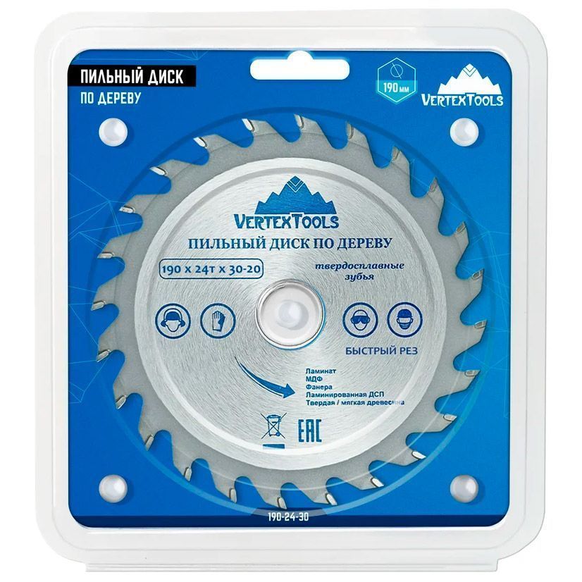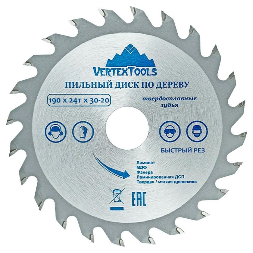 Пильный диск по дереву Vertextoolsпредназначен для выполнения точных продольных и поперечных чистовых пропилов в мягкой и твердой древесине, прессованной слоистой древесине, фанере, ламинате и ДСП.