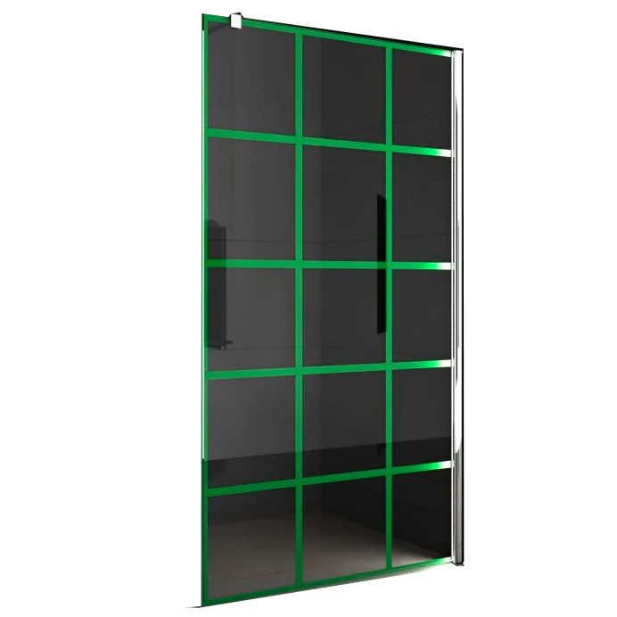 Душевое стекло (перегородка) ODA WK100 прозрачное толщиной 8 мм в алюминиевом профиле черного цвета. На самом стекле квадратная раскладка со светодиодной подсветкой.