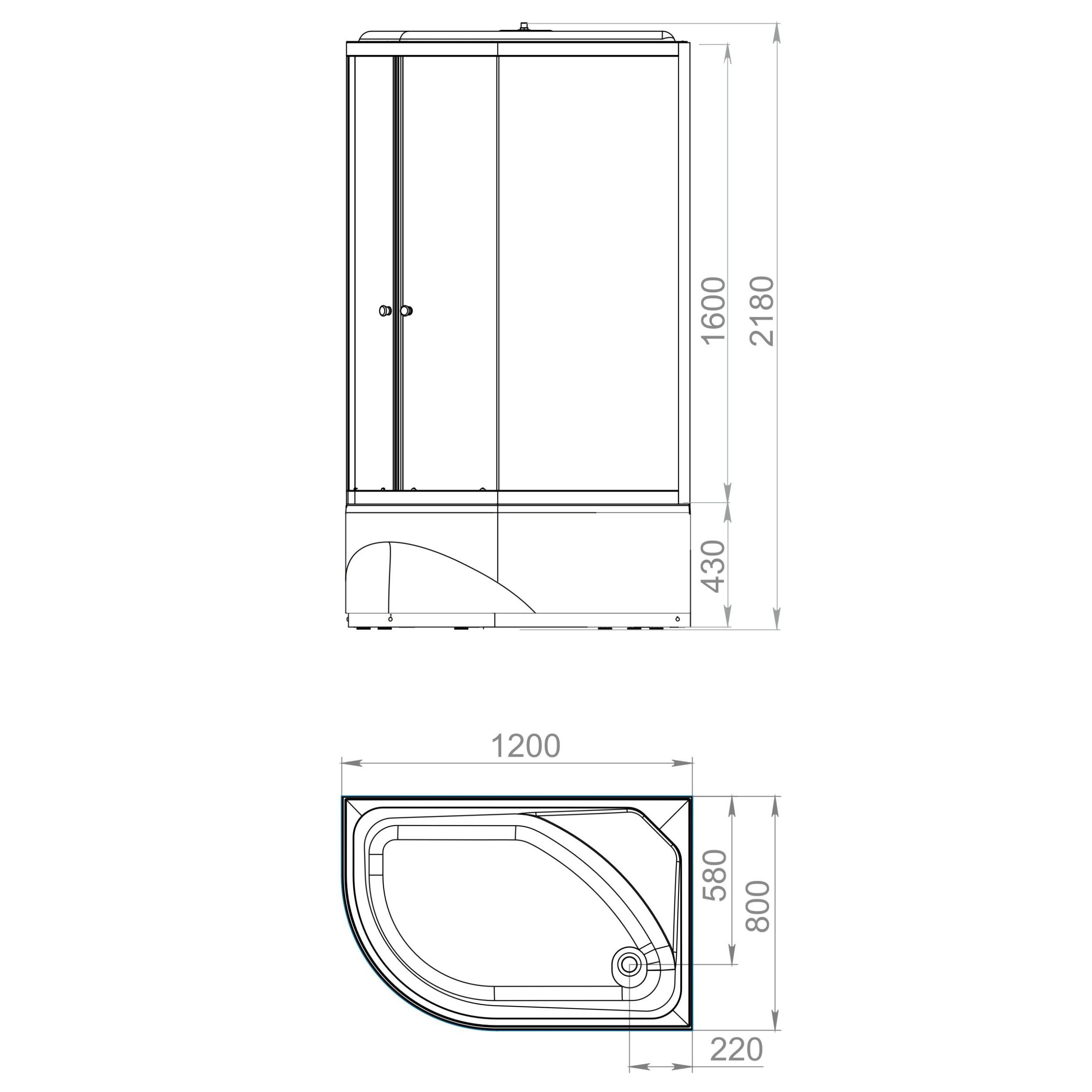 Душевая кабина Домани-Спа Дэлайт-128 (Правая) 1200х800х2180мм, душ, тонированное стекло, высокий под.