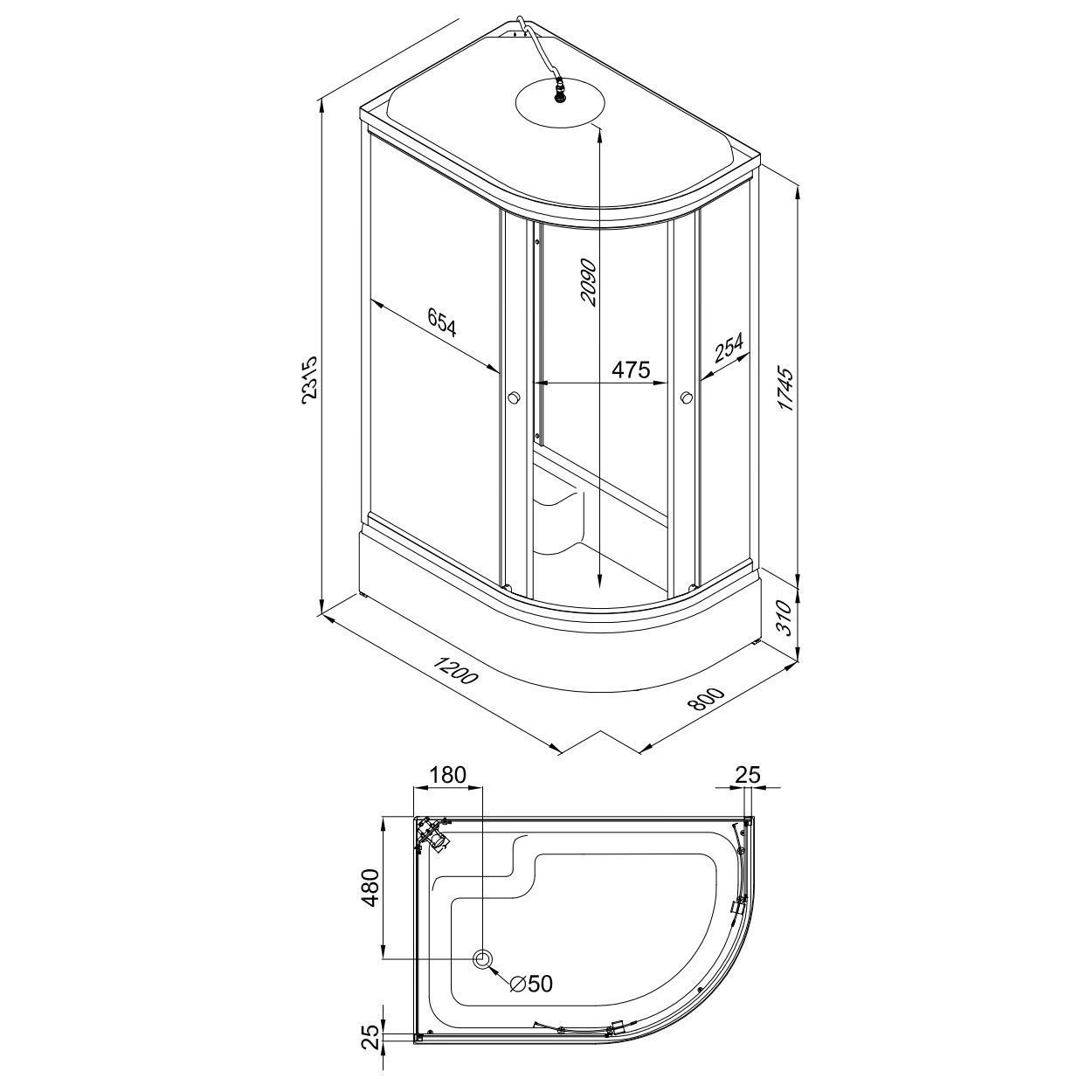 - Акриловая душевая кабина для бытового использования;