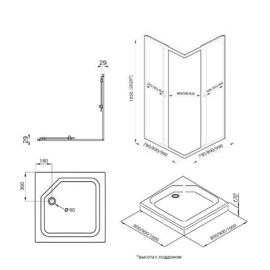 Душевое ограждение Вента-Хром Triton 1000х1000х1850, квадрат, дверь раздвижная, прозрачное стекло цена - купить в Барнауле, Бийске. Размеры, характеристики, фото в интернет-магазине.