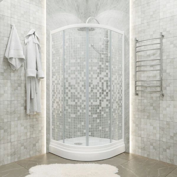 Душевое ограждение Мозаика Triton 900х900х1745, полукруг, дверь раздвижная, стекло мозаика цена - купить в Барнауле, Бийске. Размеры, характеристики, фото в интернет-магазине.