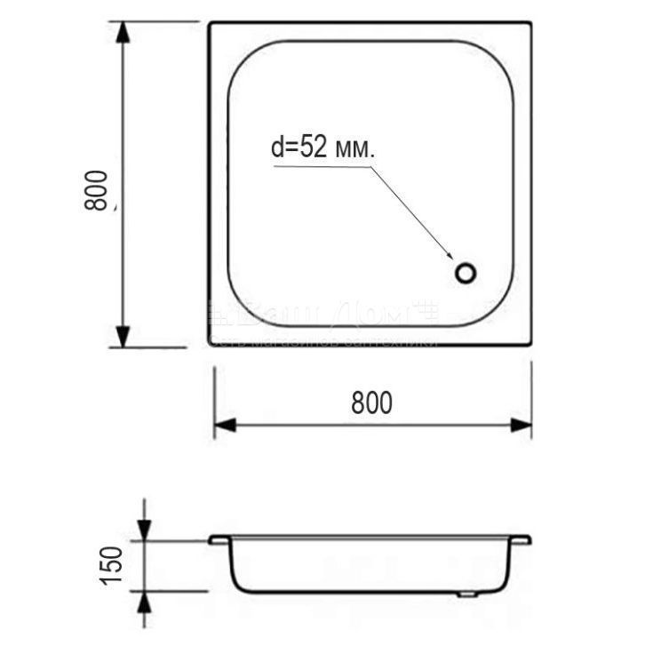 Поддон душевой стальной 80х80х15