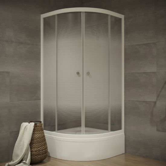 - Форма четверть круга позволяет удобно разместить конструкцию в ванных комнатах небольшой площади.