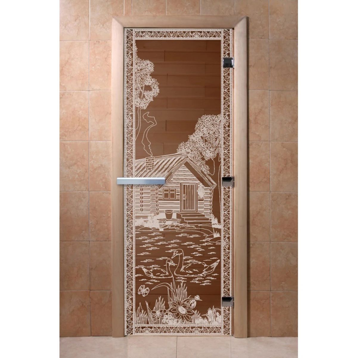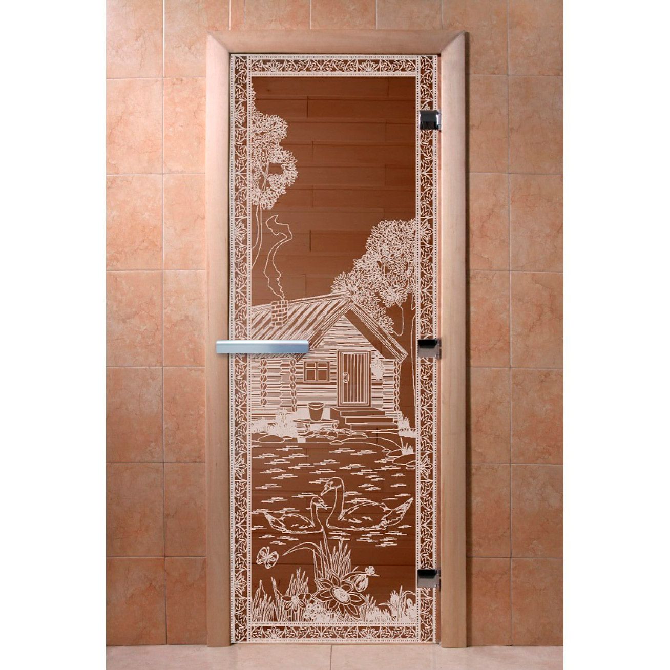 Дверь банная стеклянная Банька в лесу 1900х700х6мм с коробом, 2 петли, бронза, правая цена - купить в Барнауле, Бийске. Размеры, характеристики, фото в интернет-магазине.