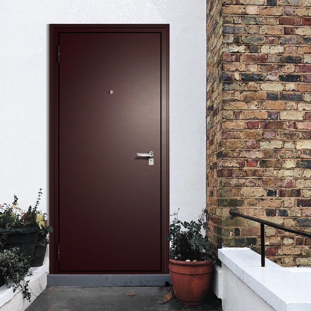 Стальная рама оснащена двумя внешними износоустойчивыми петлями с подшипниками и стационарным порогом. Все изделие с обеих сторон покрыто атмосферостойким порошково-полимерным покрытием «медный антик», которое защищает дверь от механических повреждений и коррозии. В дверном полотне используется наполнитель пенополистирол, который сохраняет тепло в помещении и защищает от шумов извне. Контур уплотнителя из вспененной резины не пропускает внутрь шум и холод.