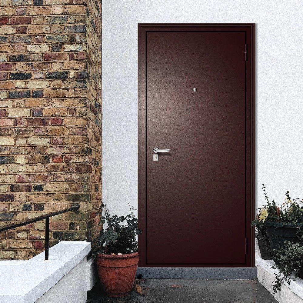 Стальная рама оснащена двумя внешними износоустойчивыми петлями с подшипниками и стационарным порогом. Все изделие с обеих сторон покрыто атмосферостойким порошково-полимерным покрытием «медный антик», которое защищает дверь от механических повреждений и коррозии. В дверном полотне используется наполнитель пенополистирол, который сохраняет тепло в помещении и защищает от шумов извне. Контур уплотнителя из вспененной резины не пропускает внутрь шум и холод.
