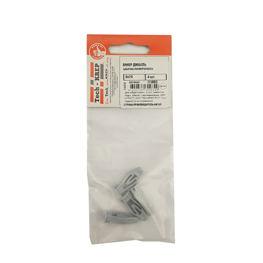 Дюбель Бабочка полипропиленовый (ПП) 8х28мм, 4 шт.