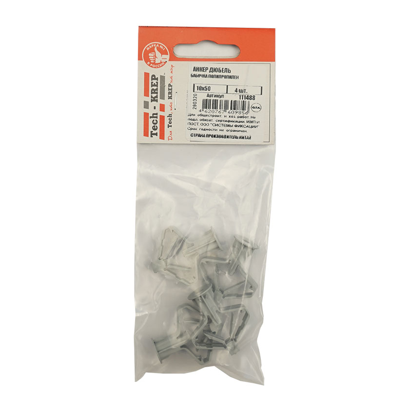 Дюбель Бабочка полипропиленовый (ПП) 10х50 мм, 4 шт.