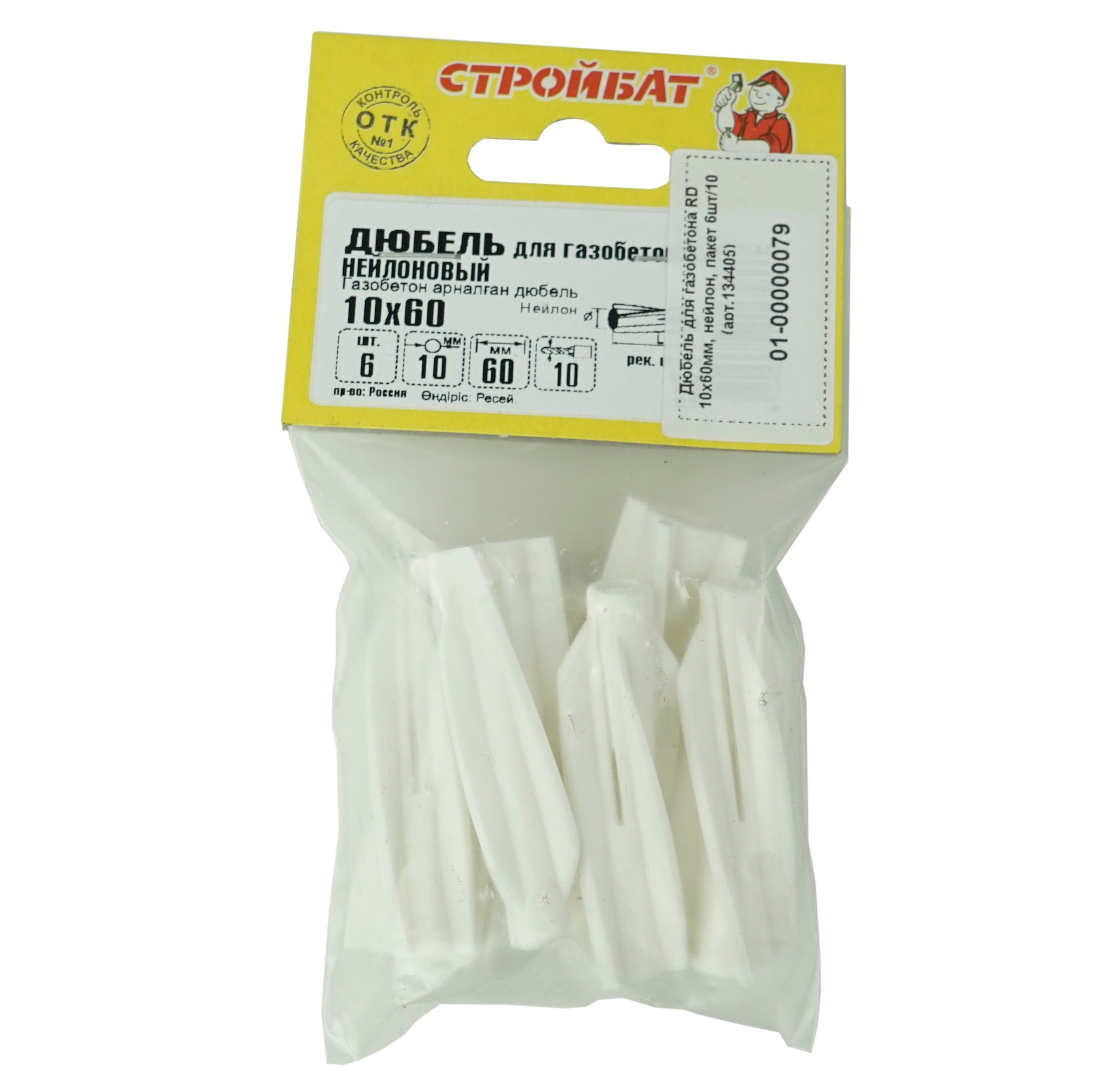 Нейлоновый дюбель для газобетона и ячеистого бетона с высокими внешними ребрами. Ребра значительно увеличивают площадь распора и предотвращают проворачивание дюбеля в отверстии при монтаже. Монтаж дюбеля производится без предварительного сверления: он забивается в стену молотком, затем в дюбель вкручивается шуруп.