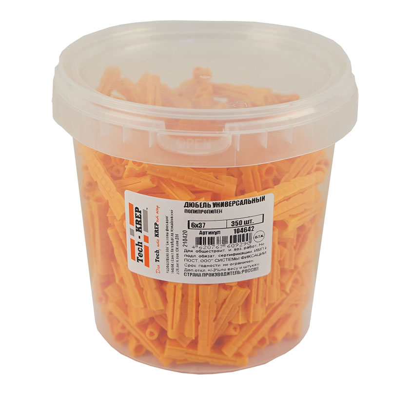 Универсальный дюбель предназначен для стандартных креплений с помощью шурупов в сплошных и пустотелых кладках. Крепёж обеспечивает надёжное крепление детали как в кирпиче, бетоне, так и в гипсокартоне. Три распорных сегмента, соединённых между собой на конце дюбеля, способствуют равномерному распределению сил внутри отверстия, не дают шурупу соскальзывать в сторону, что позволяет дюбелю изменять форму в зависимости от кладки.