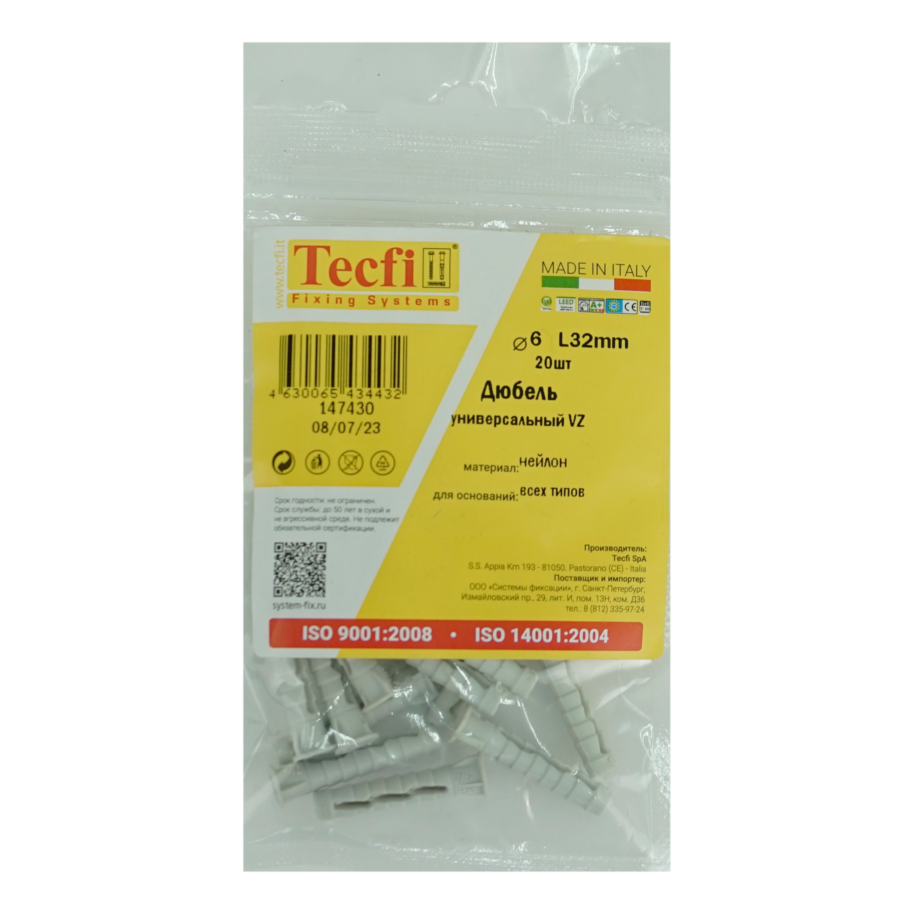 Полипропиленовый универсальный четырехраспорный дюбель с манжетой, шипами и усами применяется для фиксации шурупа при монтаже в плотных материалах. Конструкция предотвращает проворачивание дюбеля в отверстии и обеспечивается прочная фиксация дюбеля в полнотелых строительных материалах.