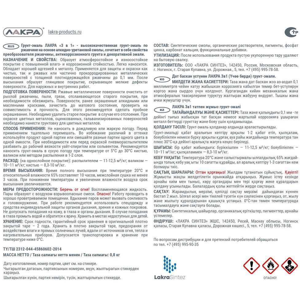 - Защитные свойства (преобразование ржавчины, антикоррозийность);