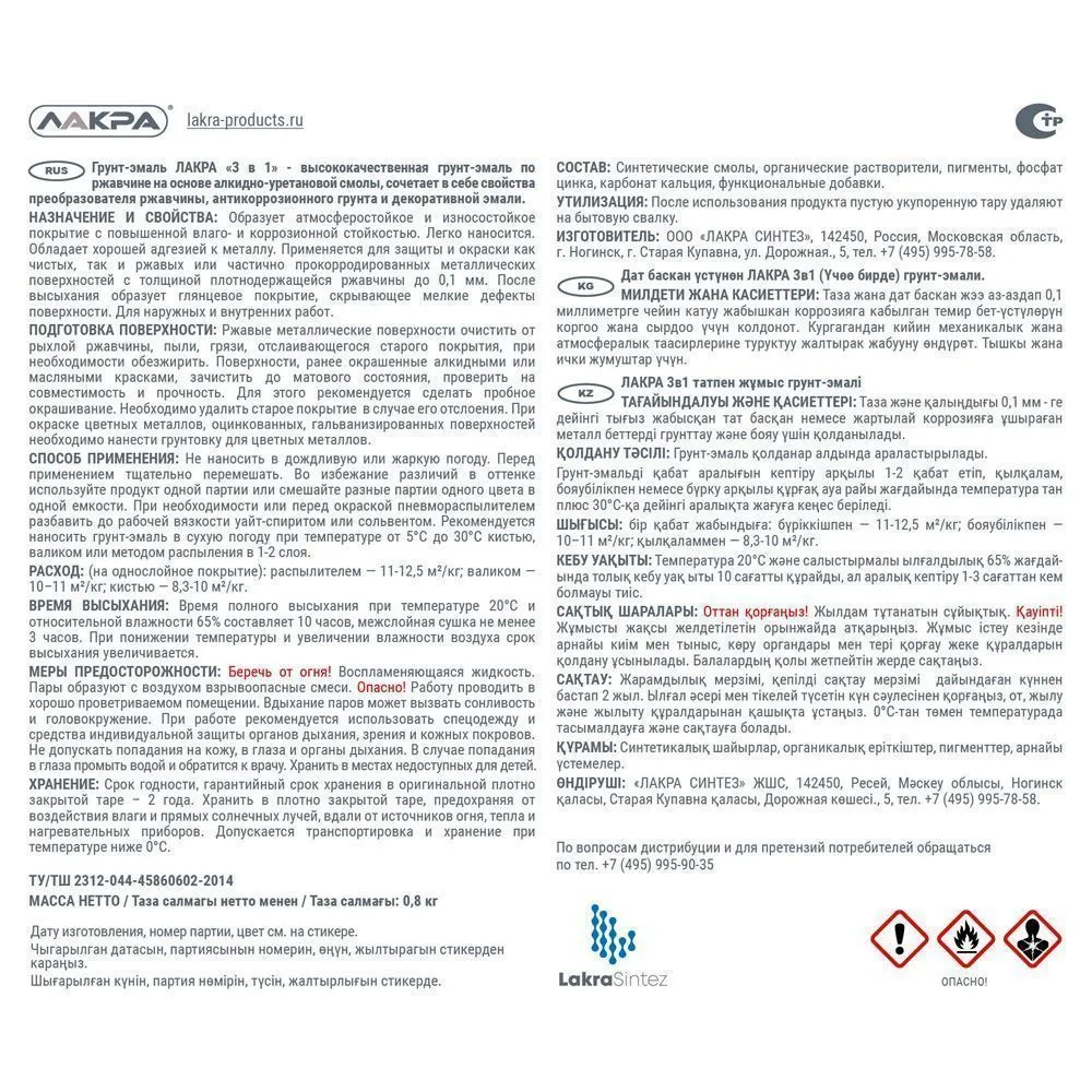 - Защитные свойства (преобразование ржавчины, антикоррозийность);