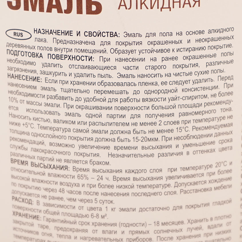 При нанесении на ранее окрашенные полы необходимо удалить отслаивающиеся части, различные загрязнения, зашкурить и удалить пыль. Ранее окрашенные полы для удаления ворса необходимо зашкурить и удалить пыль.Перед нанесением эмаль тщательно перемешать до однородной массы. При необходимости разбавить до удобной для работы вязкости уайт-спиритом, нефрасом, скипидаром. Наносить кистью, валиком или распылителем в 1-2 слоя.