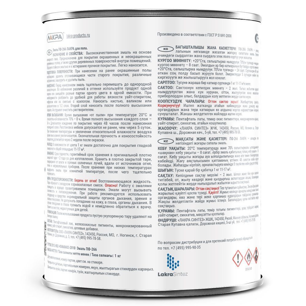 Эмаль Лакра для пола - высококачественная эмаль на основе алкидного лака. Эмаль для пола Лакра образует полуглянцевую поверхность, стойкую к механическим воздействиям, влаге и истиранию. Она отличается высокими декоративными и защитными свойствами, стойкая к мытью. Эмаль готова к применению. Быстро высыхает.