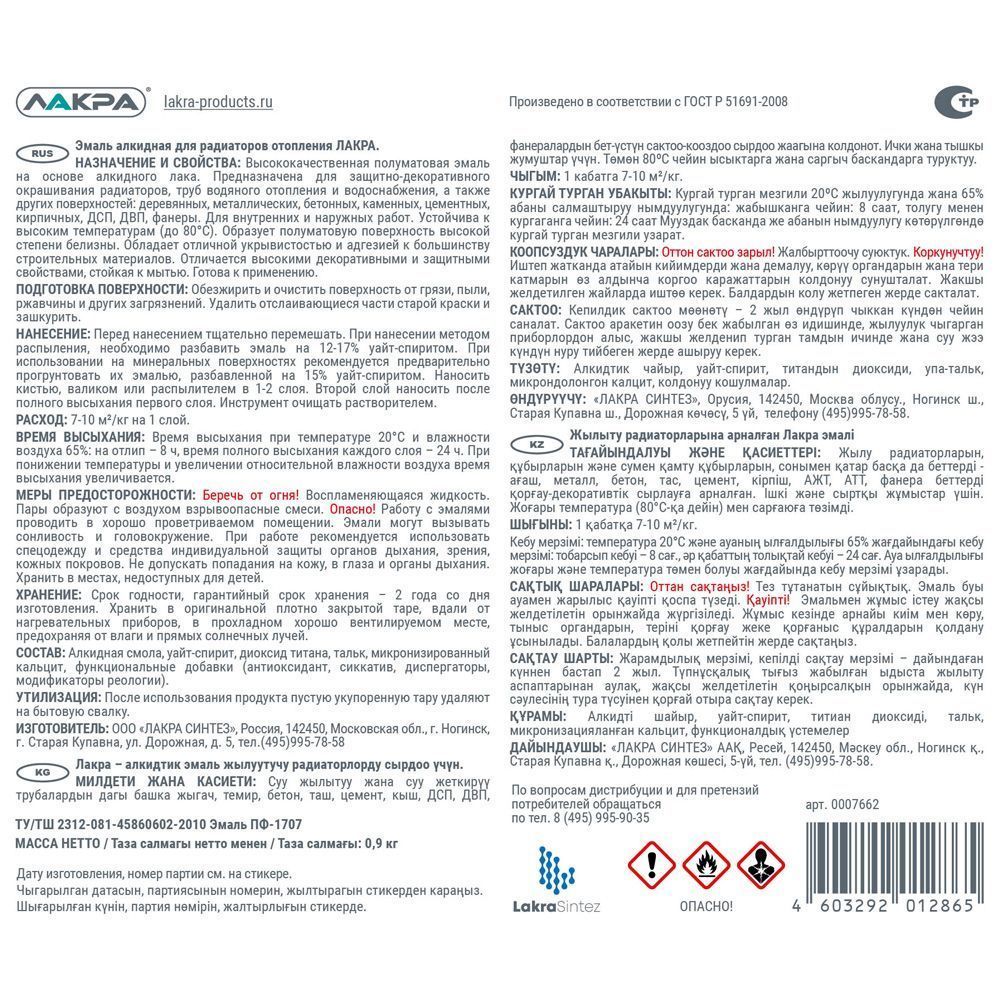 Применяется для защитно-декоративного окрашивания радиаторов, труб водяного отопления и водоснабжения и других поверхностей.