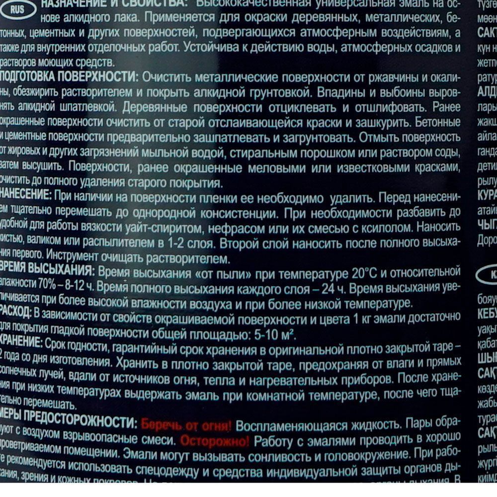 Высококачественная эмаль на основе алкидного лака. Обладает хорошими декоративными свойствами, укрывистостью и прочным сцеплением с окрашиваемой поверхностью. Легко наносится, образуя однородное гладкое покрытие, устойчивое к действию воды, атмосферных осадков и растворов моющих средств. Готова к применению.