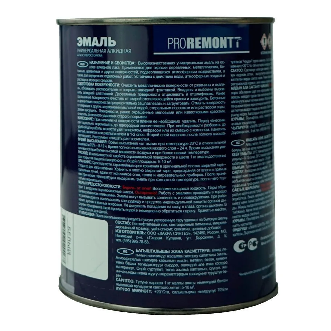 Эмаль ПФ-115 Proremontt белая 0,9кг цена - купить в Барнауле, Бийске. Размеры, характеристики, фото в интернет-магазине.
