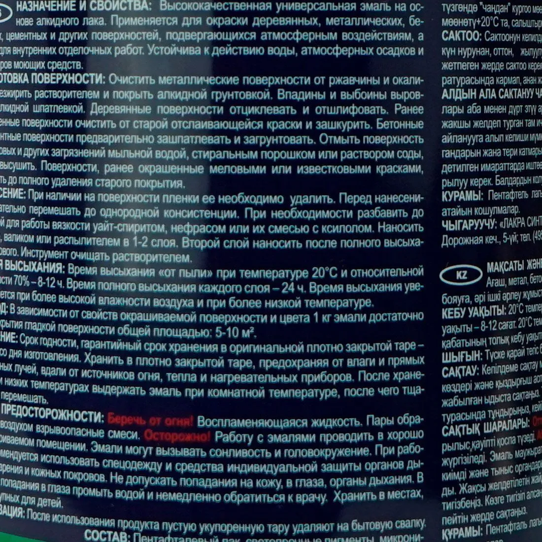 Высококачественная эмаль на основе алкидного лака. Обладает хорошими декоративными свойствами, укрывистостью и прочным сцеплением с окрашиваемой поверхностью. Легко наносится, образуя однородное гладкое покрытие, устойчивое к действию воды, атмосферных осадков и растворов моющих средств. Готова к применению.