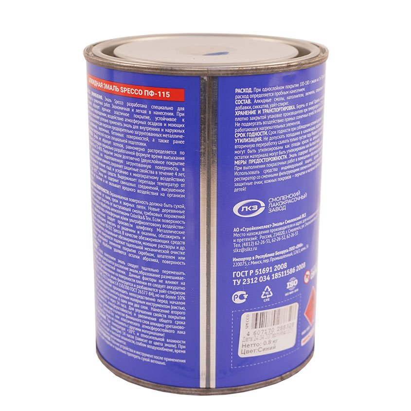 Эмаль ПФ-115 Specco синяя 0,8кг цена - купить в Барнауле, Бийске. Размеры, характеристики, фото в интернет-магазине.