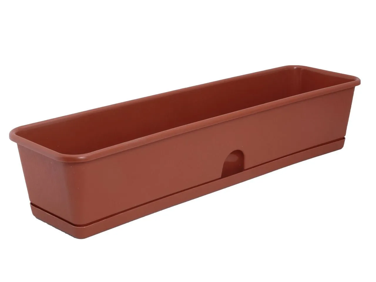 Универсальная цветовая гамма подойдет к любому стилю оформления балкона. Пластик легкий и прочный, не повреждается и не выгорает на солнце, выдерживает низкие температуры (до -5С). Гладкие стенки ящика препятствуют врастанию корней растений, обеспечивая комфортную пересадку. Пластиковый поддон защищает различные поверхности от попадания воды при поливе растения. Также обеспечивает сохранение дополнительной влаги для растений. Неприхотлив в уходе, легко моется при необходимости.