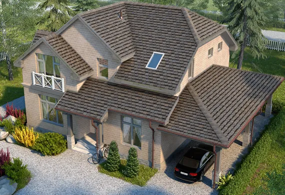 При помощи фасадной плитки Хауберк выполняют облицовку фасадов строений из дерева, пено- и газоблоков, а также заборов и ограждений. Фасадную плитку HAUBERK применяют и для декоративного оформления входных групп и фронтонов.