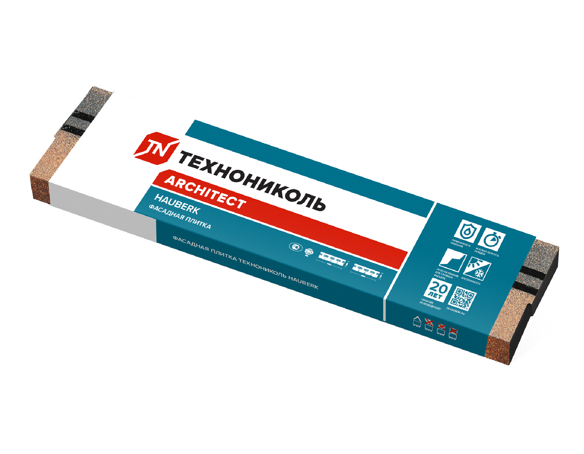 Фасадная плитка HAUBERK – облицовочный материал, изготовленный из биостойкого стеклохолста, улучшенного битума и гранулята из цветного натурального базальта