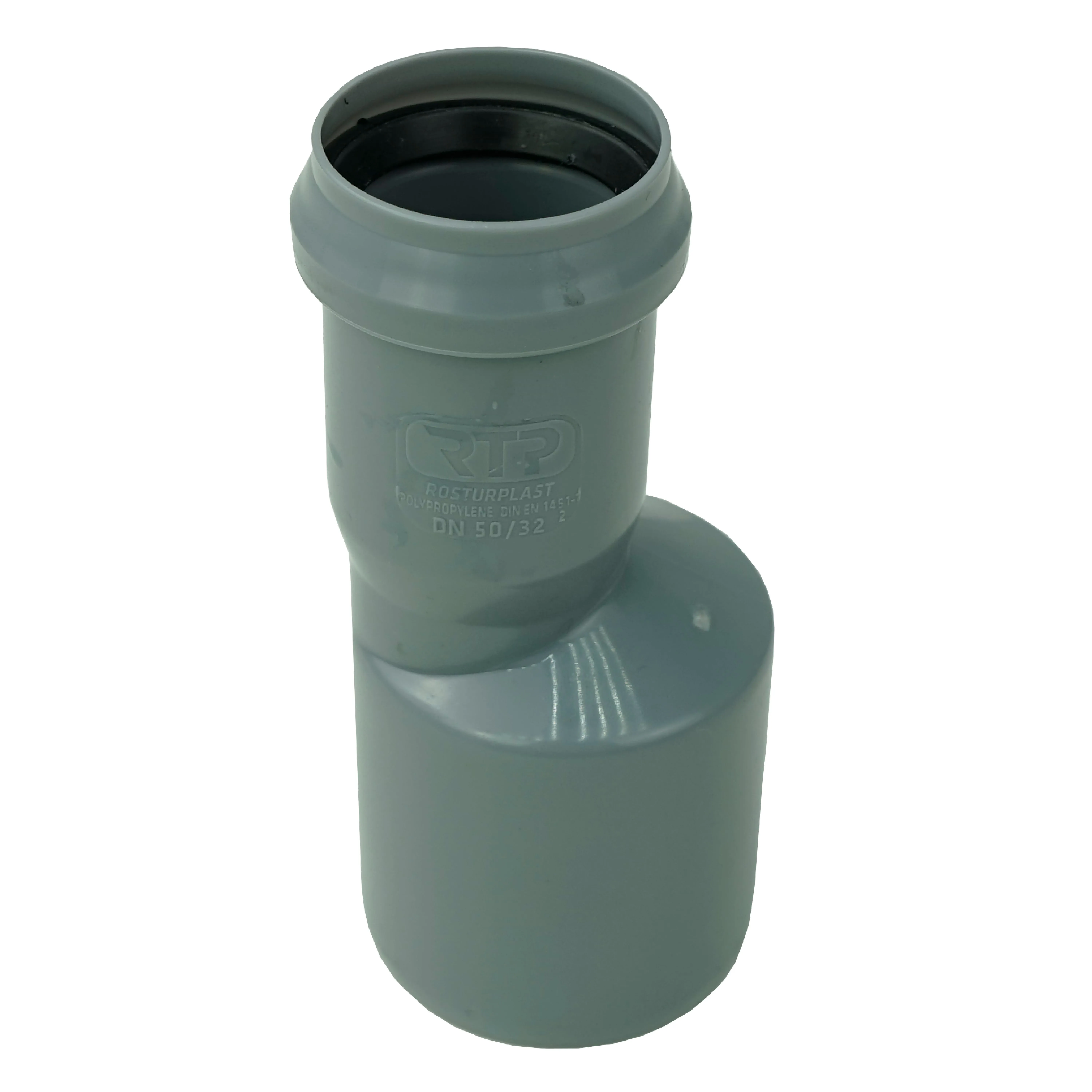 Переход эксцентрический для перехода с трубы диаметром 50 мм на диаметр 32 мм при монтаже систем внутренней канализации.