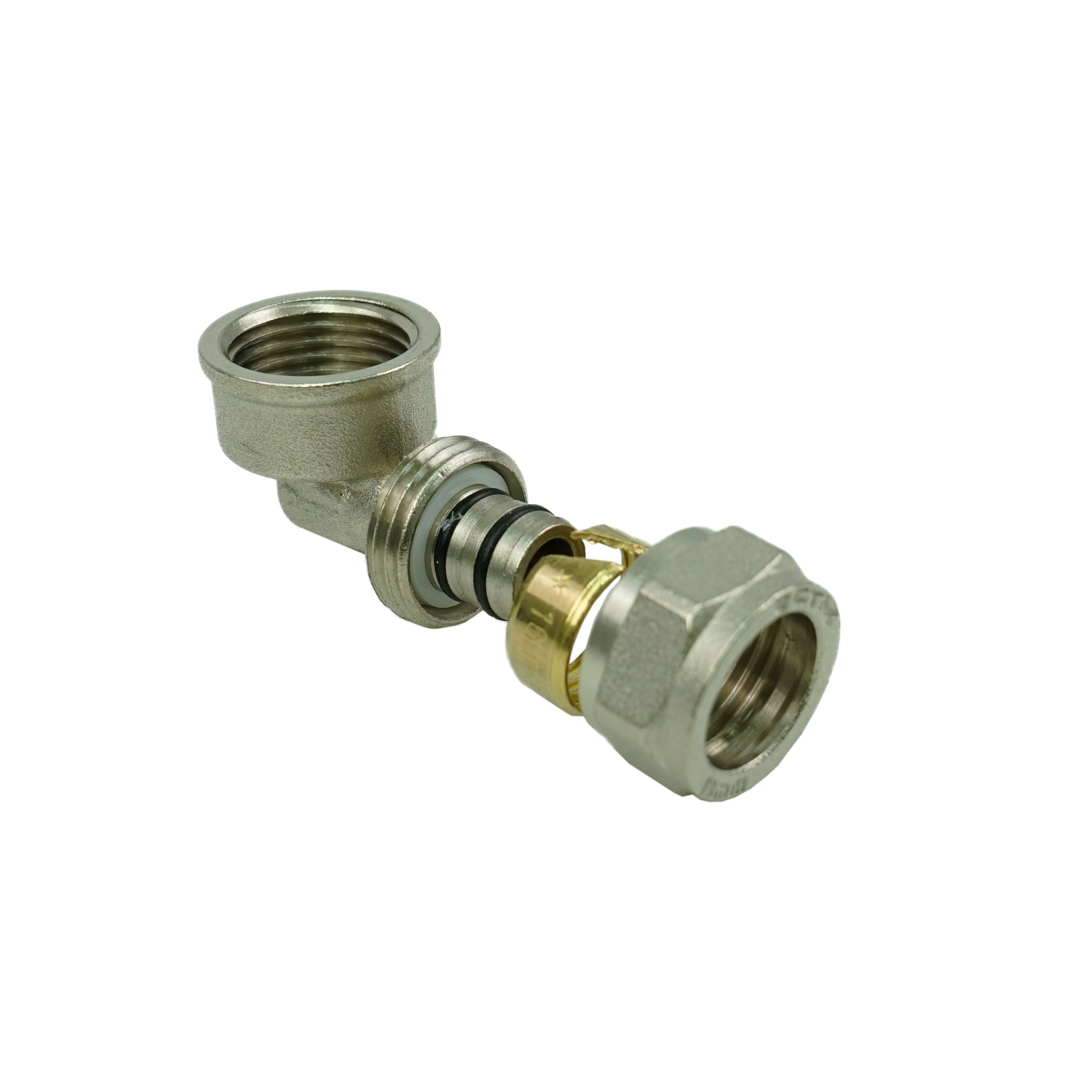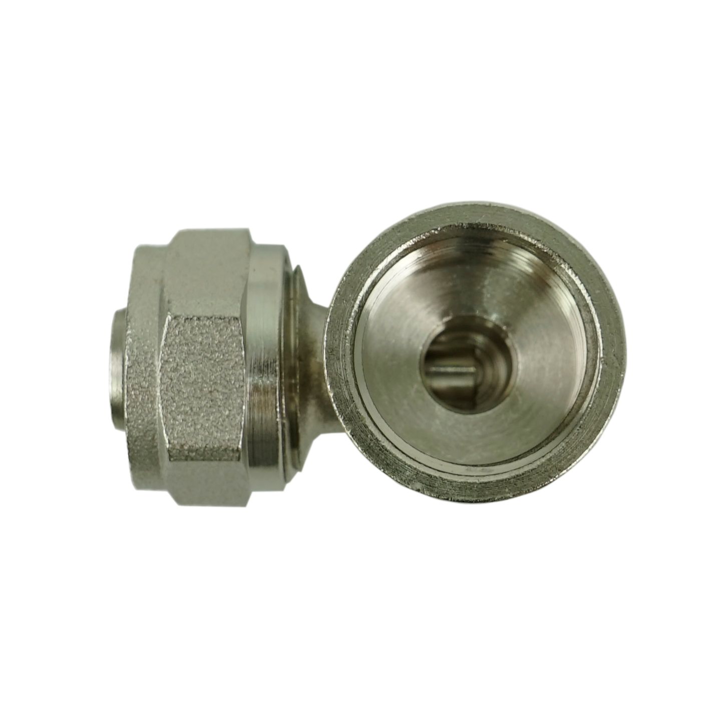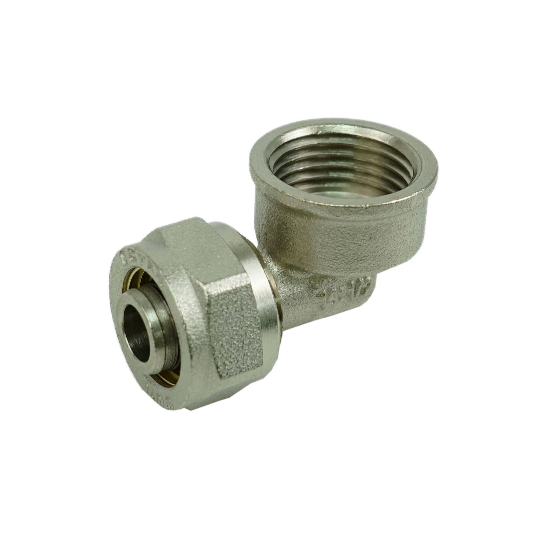 Уголок применяется для поворота металлопластиковой трубы и одновременного перехода на запорную арматуру или стальные трубы.