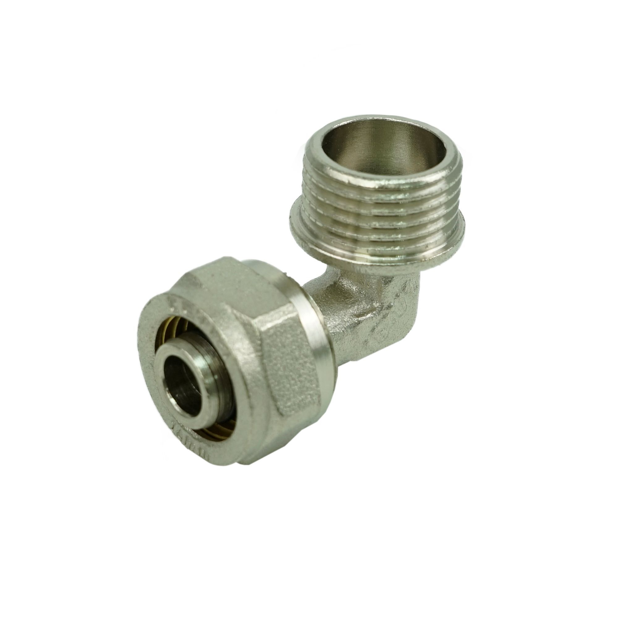 Уголок применяется для поворота металлопластиковой трубы и одновременного перехода на запорную арматуру или стальные трубы.