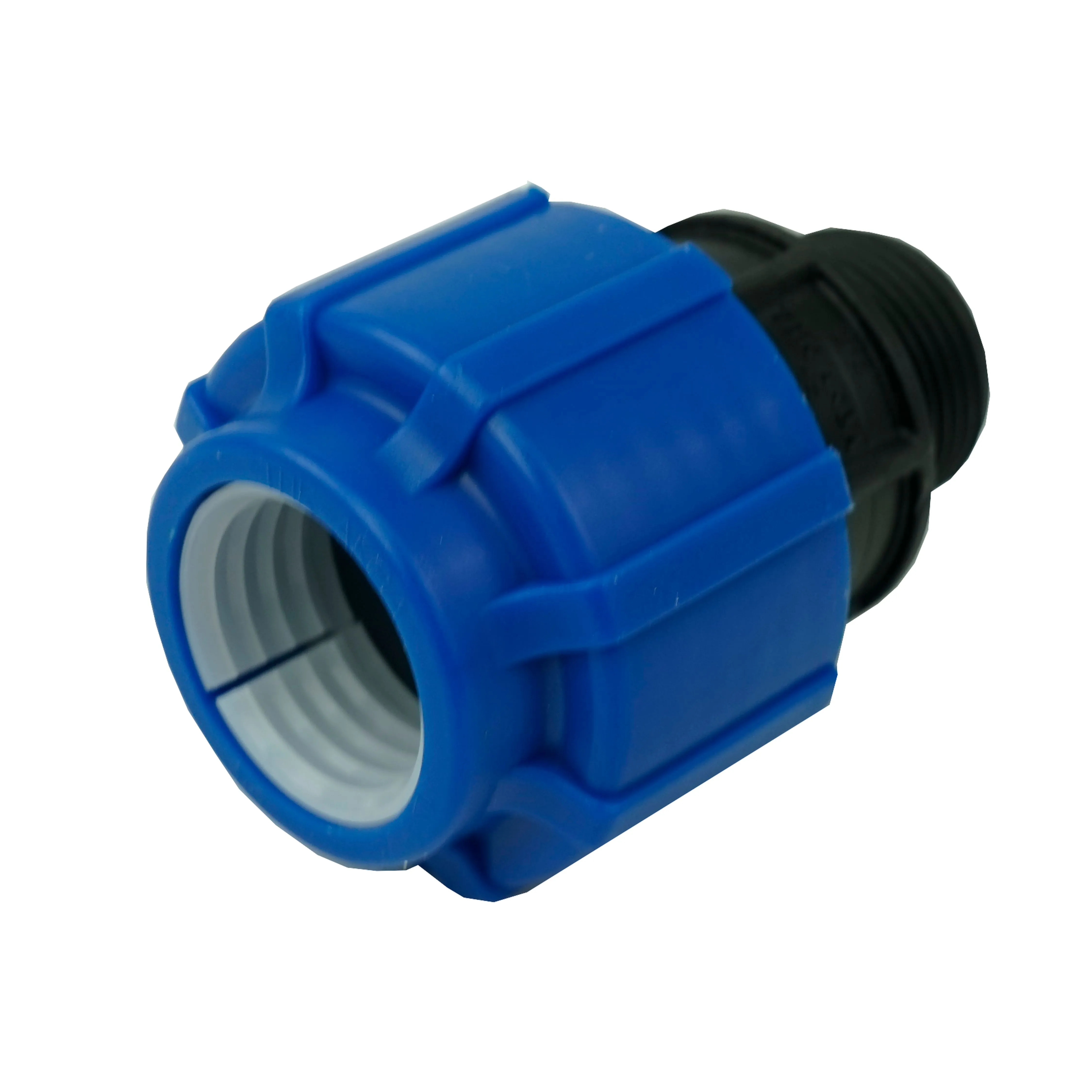 Компрессионная муфта наружная резьба обеспечивает надежный переход с полиэтиленовой трубы на резьбовые фасонные части или стальные трубы с внутренней резьбой.