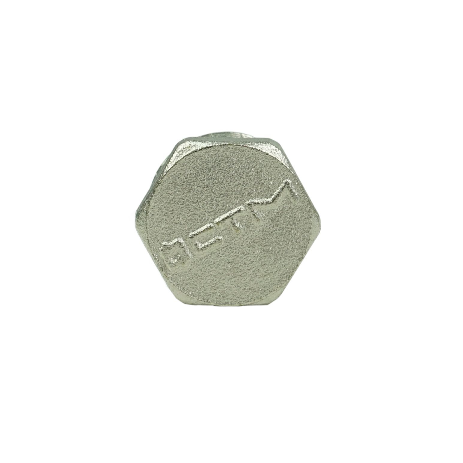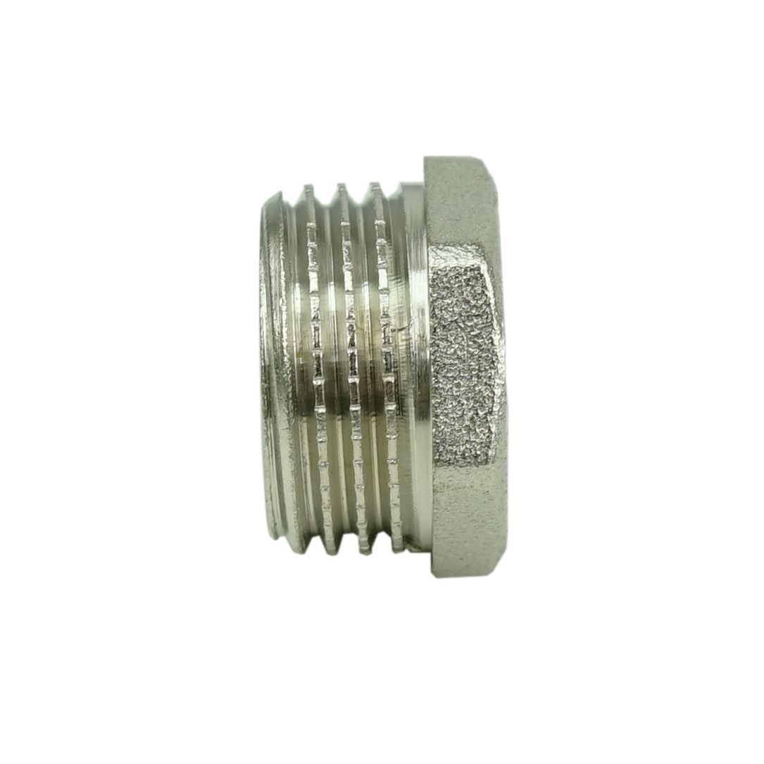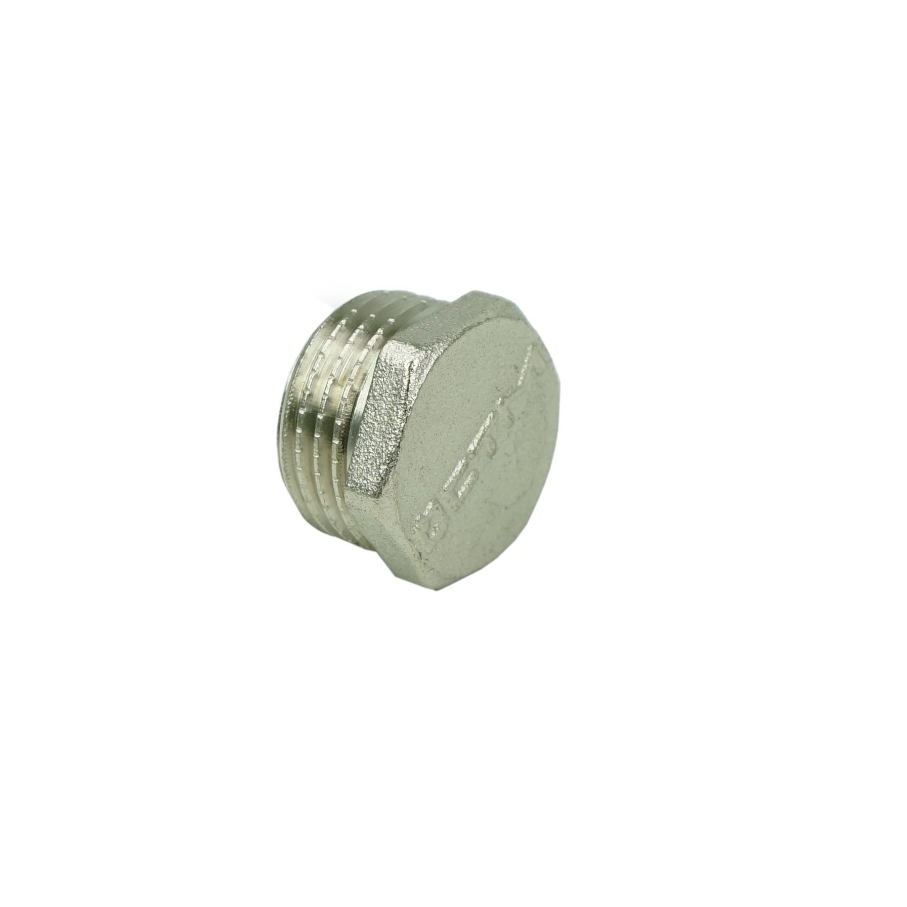Заглушка с наружной резьбой 1/2" изготовлена из горячепрессованной латуни и имеет восьмигранную головку.
