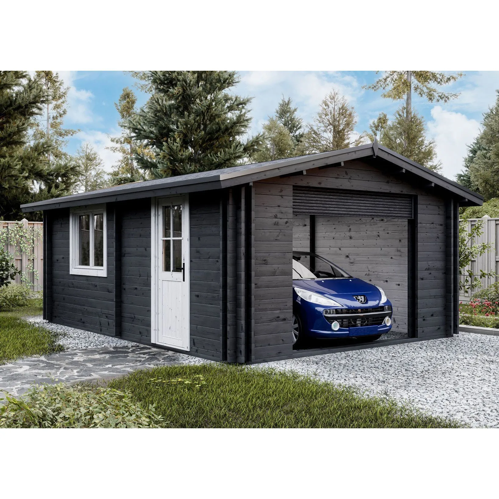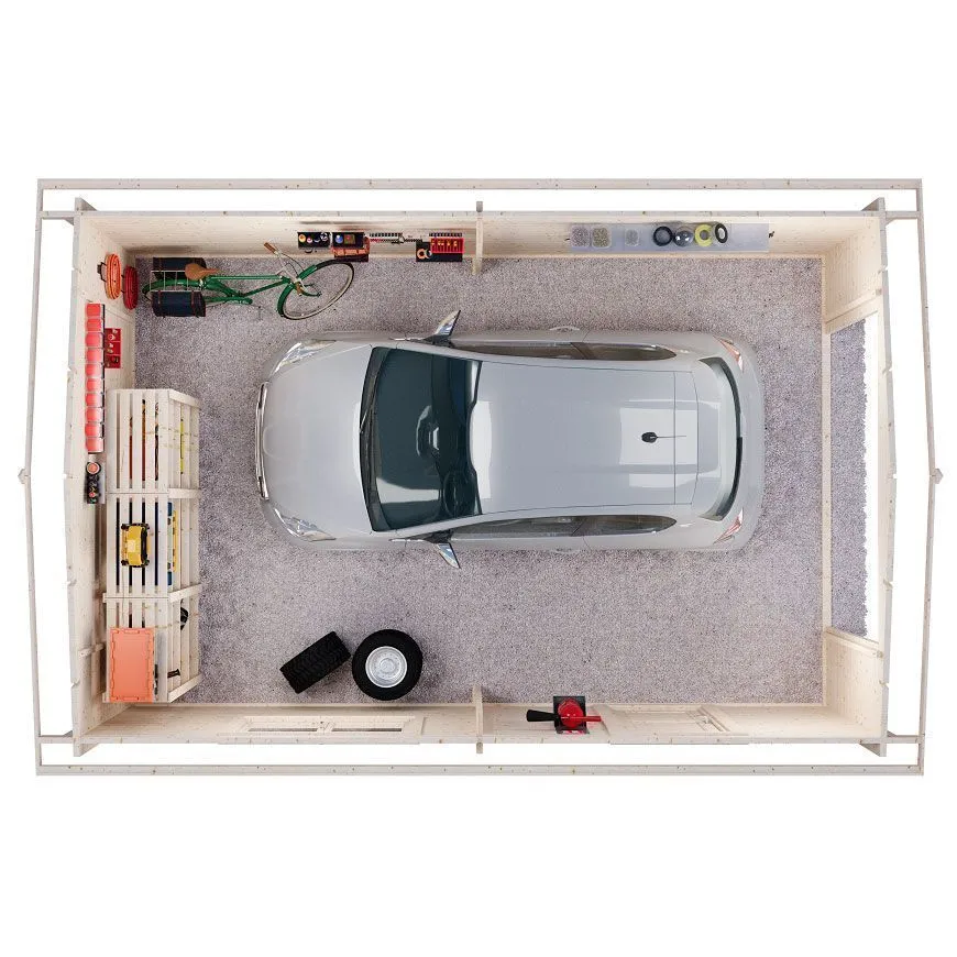 Функциональный гараж площадью 21 кв.м. Способен вместить не только автомобиль, но и обеспечить дополнительное пространство для хранения различных вещей. Гараж оборудован одним распашным окном, которое обеспечит естественное освещение в дневное время, и отдельным входом с дверью для удобства.