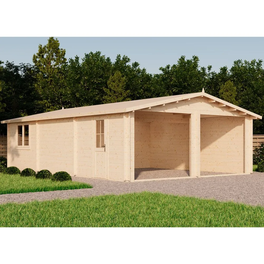 Вместительный гараж общей площадью 49 м² и размером 6×9 м разделен на две зоны: хозблок площадью 16 м² и гараж площадью 33 м². Гараж рассчитан на хранение одного автомобиля, а также мелкогабаритных транспортных средств, или садовой техники. Помещение оснащено двумя распашными окнами и отдельным входом с дверью. Два въезда обеспечивают комфортное размещение всех транспортных средств.