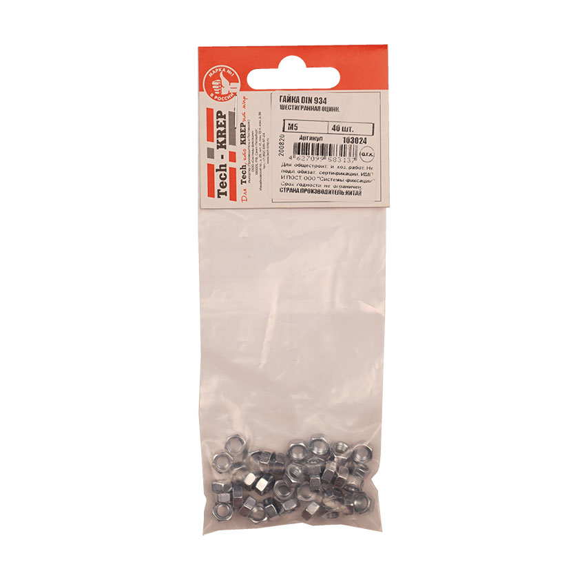 Гайка DIN934 оцинкованная М5 шестигранная гайка с внутренней резьбой для создания резьбового соединения с различными крепежными элементами.