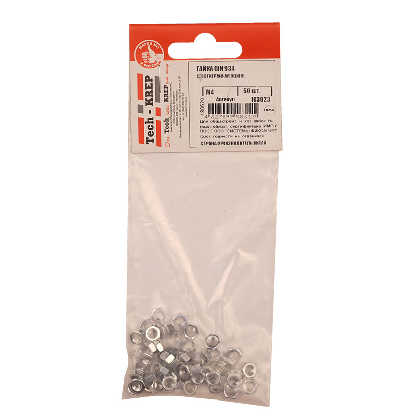 Гайка DIN934 оцинкованная М4 шестигранная гайка с внутренней резьбой для создания резьбового соединения с различными крепежными элементами.
